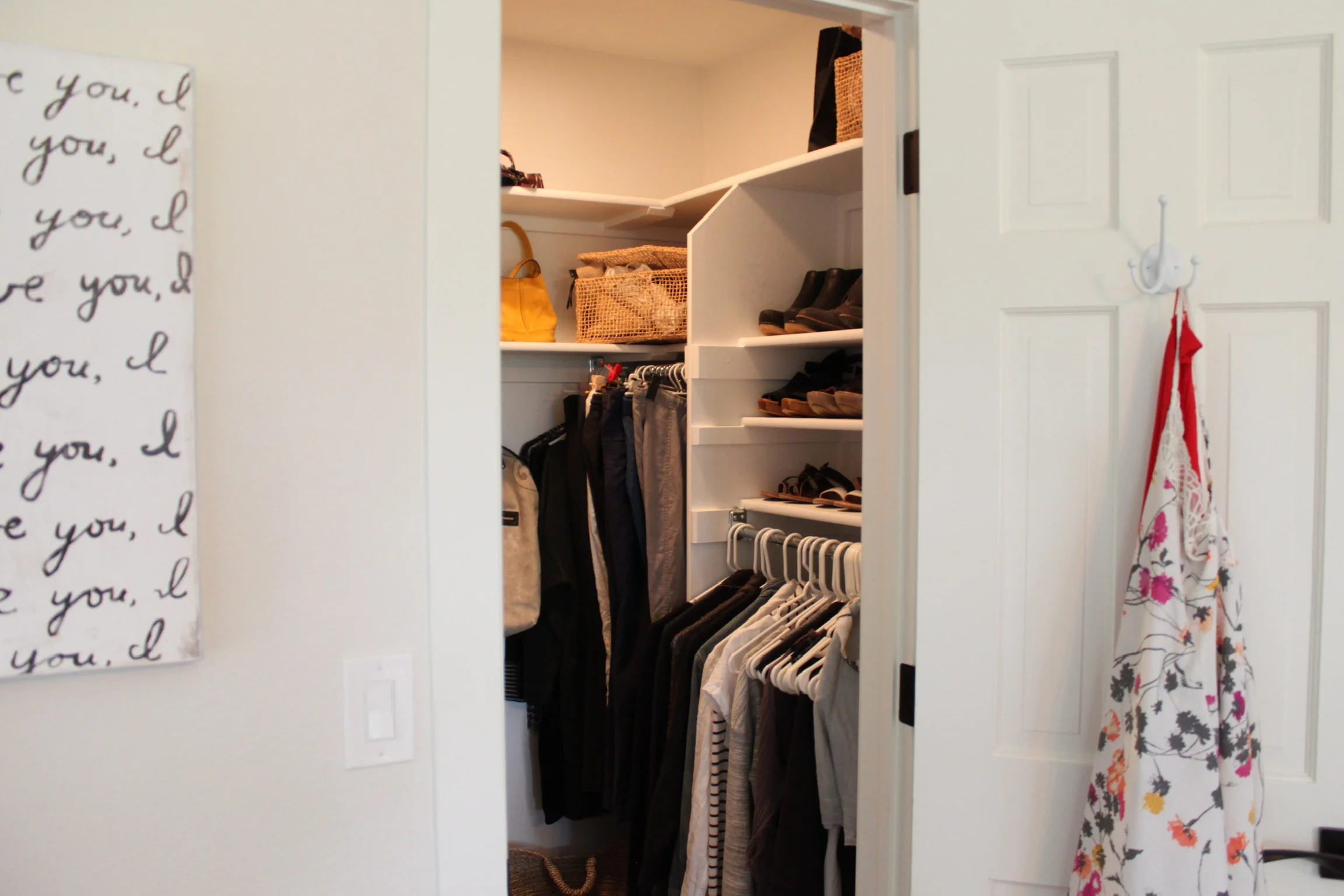 What an improvement for both my physical space by adding much-needed whitespace to an overcrowded master closet but also to uplift and lighten my soul, mind, and spirit. I hadn't realized how the amount of unused/unnecessary clutter was weighing me down. With the closet redesign and declutter, I found that I no longer tossed my clothes on a bedroom chair for later to drudgingly put away - Seeing and experiencing the redesign with the logical organization has inspired me to keep my closet and room clear and uncluttered!